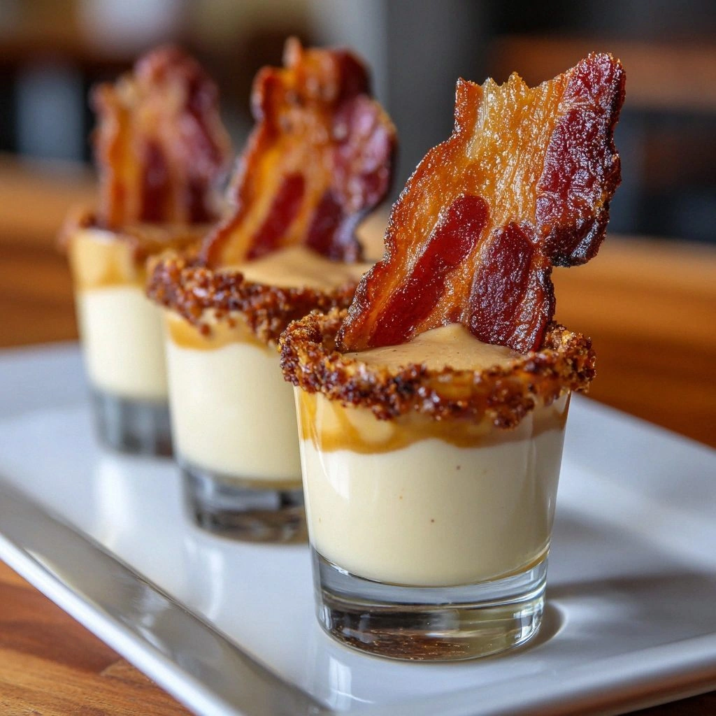 - Step 7: Garnish for Extra Flavor. Place a crispy bacon strip on top of each shot, letting it float slightly. The bacon should be perfectly crisp, with a slight char that adds a smoky aroma when you bring the glass to your lips. The crunch contrast enhances the creamy base and completes the sensory experience. The garnish also adds a visual pop that makes the shot Instagram‑ready.